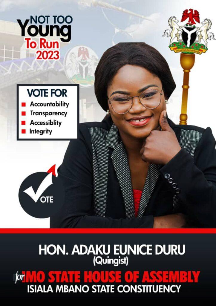 Adaku Duru aka quingist is running for limo state house of assembly, Isiala mbano constituency and she needs your support.