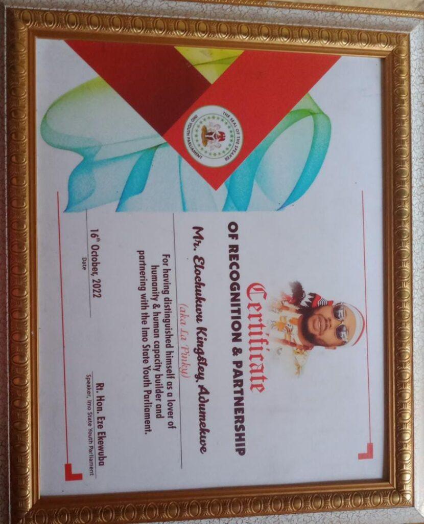 These two awards conferred on Mr. Elochukwu Kingsley Adumekwe aka LaPinky is a testament of his integrity, humility, and commitment to human and community development.