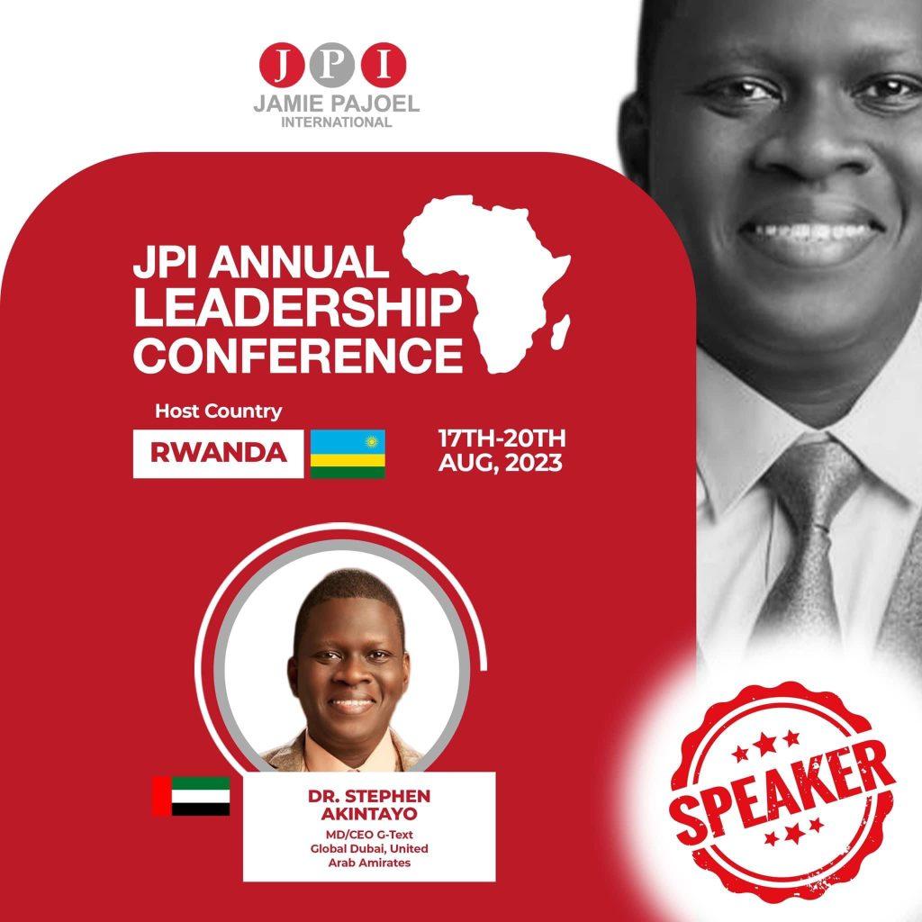#JPI: Dr. Stephen Akintayo will be speaking at the Jamie Pajoel International Annual Leadership Conference in Kigali, Rwanda