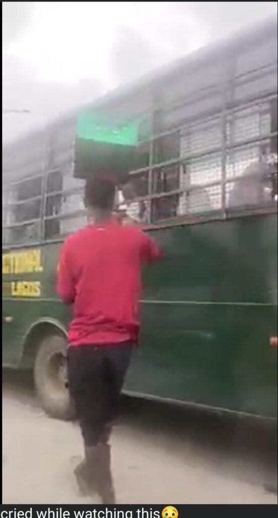 The young Hawker who hawks sachet water gave despite the little profit he makes from his business.