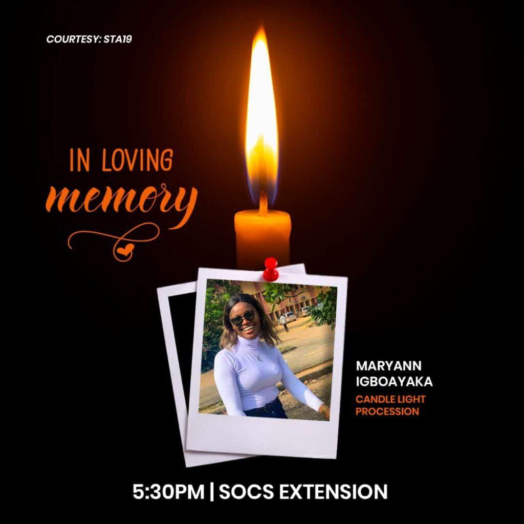 The tragic death surprised everyone and threw the entire school especially her course mate into a state of mourning and sadness. Maryann is one of the best brains in her department, and loveable.