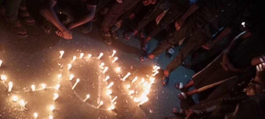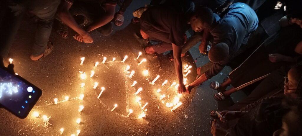 They started from their lecture hall down to the junction that led to her house where they prayed. The continued from there to the Catholic Church where she worshipped every Sunday and prayed. Before finally going to the hostel where they also prayed and wrote her nick name ADA on the road with candle.